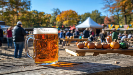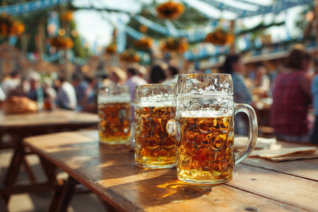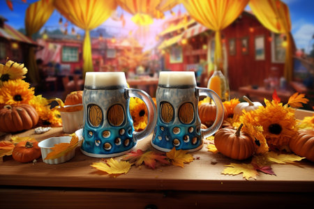 Colorful oktoberfest scene with beer tents and traditional bavarian attire in germany