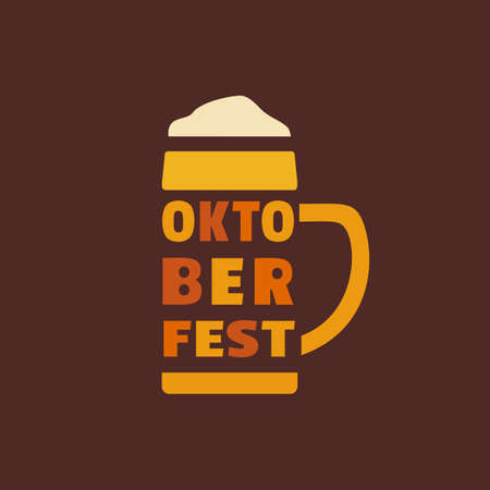 Oktoberfest Beer Mug typography simple vector icon. Craft Beer festival cute cartoon design element. Brewery drink sign isolated illustration. German Brew Fest minimalist symbol template background
