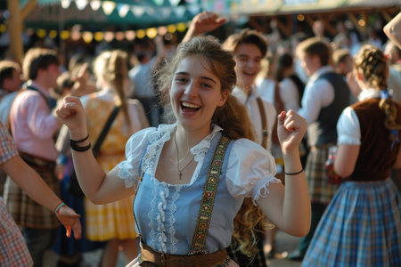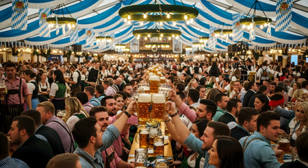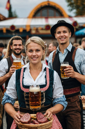 Lively oktoberfest beer tents and bavarian costumes creating a festive scene in germany
