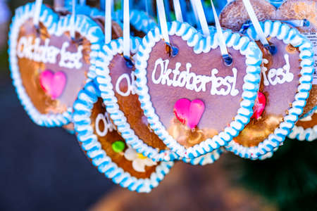 Colorful gingerbread souvenirs from oktoberfest in Munich city, Germany