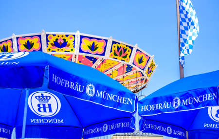 Munich, Germany - September 27: people and fairground rides at the biggest folk festival in the world - the oktoberfest on september 27, 2018 in munich.