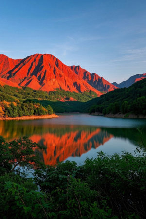 The mountain which turned red vividly