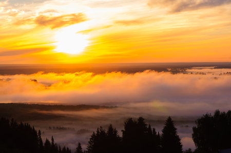 Sun rise time in the north part of Russia