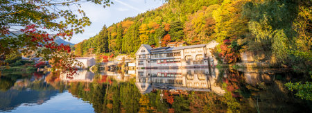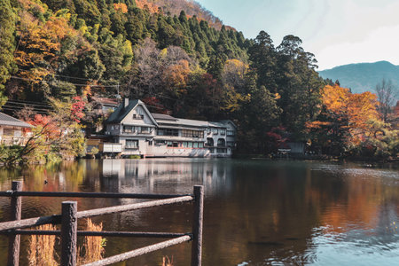 Traditional Japanese Ryokan by Lake Kinrin in Autumn, Yufuin, Japan