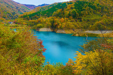 Shinkawa Dam and Autumn Mountains. Shooting Location: Gunma Prefecture
