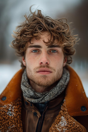 Man with beautiful blue-gray eyes and an intense, haunting gaze, looks spellbound into the camera.