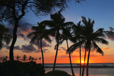 Palm on sunset beach of Oahu North Shore, Hawaii