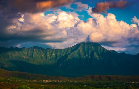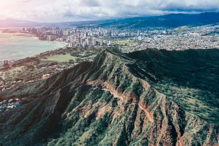 Mountain view of Diamondhead, Honolulu, and Pacific ocean on Oahu, Hawaii.