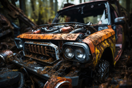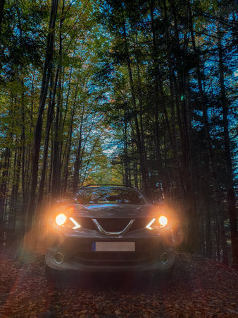 Car in autumn forest. Car in autumn forest. Car in autumn forest.