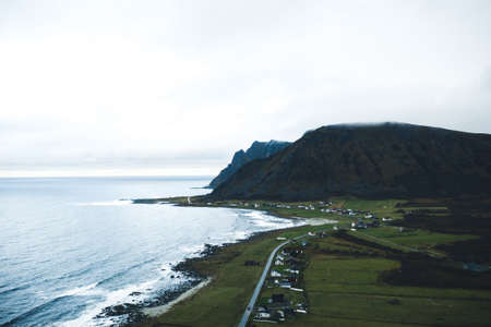 Mountain sea landscape. Beautiful nature of Norway. Lofoten islands.