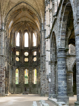 Beautiful view of famous Abbaye de Villers, a Cistercian monastery founded in 1146, Walloon Brabant region, Belgium