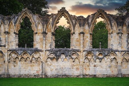 Ruins of an old medieval abbey in the english city of York - at sunset