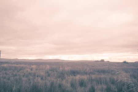 Deserted dirt road passing through rural lowlands called Pampas with dry bushes and light poles near Cambara do Sul. A small country town in southern Brazil with amazing natural tourist attractions.