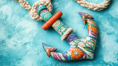 This vibrant decorative anchor art piece features intricate designs and colors, perfect for enhancing nautical-themed interiors and summer vibes.