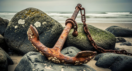 AI Generated. Old nautical anchor symbolizing strength and stability