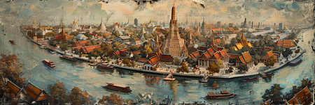landscape of buildings in the Bangkok city watercolor style illustration impressionist painting.