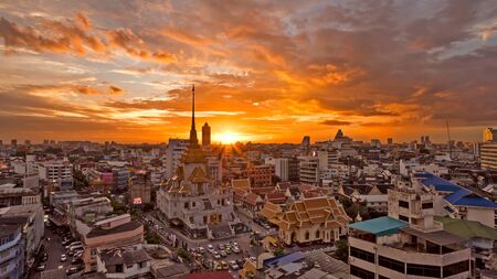 Cityscape on sunset time at Wattraimitr temple in the chinatown Bangkok metropolis Thailand