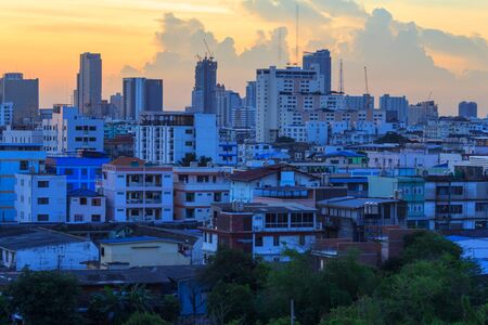 Cityscape in Bangkok Thailand before sunset, Sunlight on Bangkok landscape