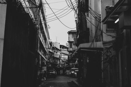 BANGKOK, THAILAND - MAY 04 : Cityscape china town in bangkok with black and white color.