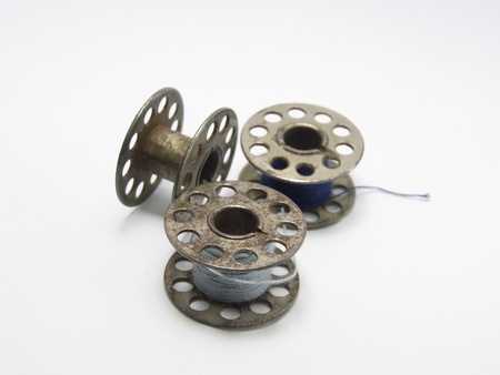 Spools of old thread on white background.