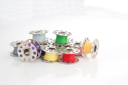 Colourful cotton reels isolated against a white background