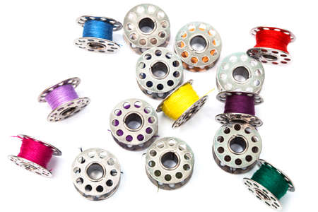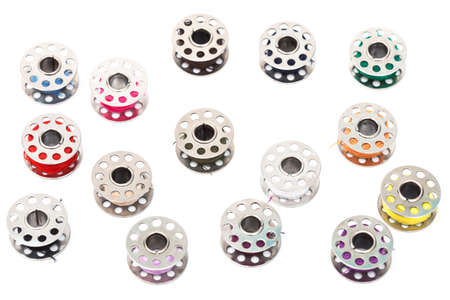 Metal thread bobbins isolated on white background