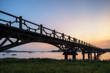 the bridge of the lake at dusk