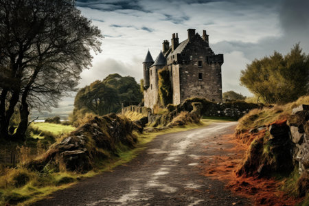Stately Scot scottish castle. Fortress travel. Generate Ai