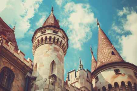Turrets reaching towards the sky in a fairy tale setting AI generated