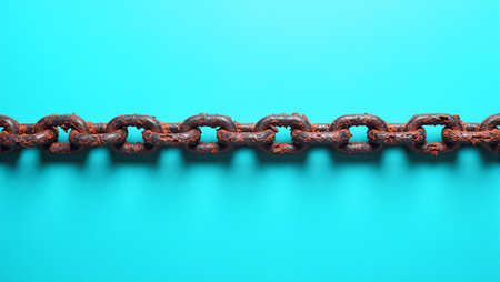 Rusty chain on turquoise background contrasting textures