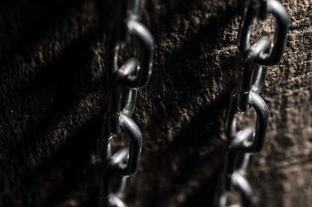 Metal chain on wooden wall background