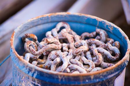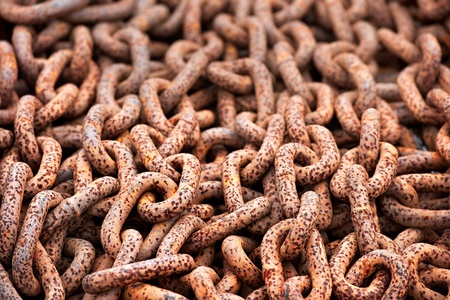 Heap of old rusty metal chains used for fishing as background in the port of Howth, Ireland