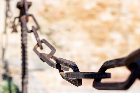 Close up of an old rusty chain