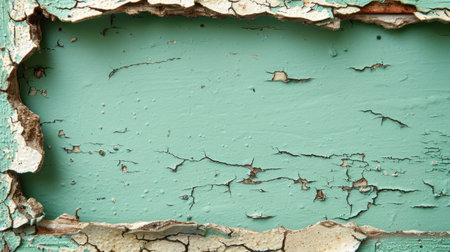 Weathered turquoise wall with peeling paint texture, abstract art concept