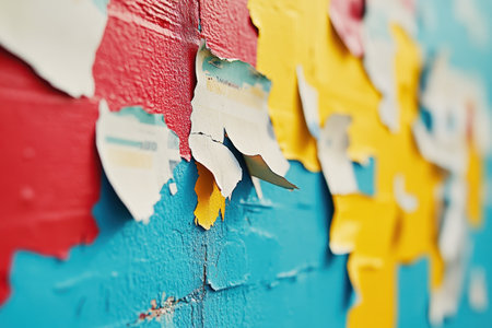 Colorful torn posters on the wall as an abstract background. Texture