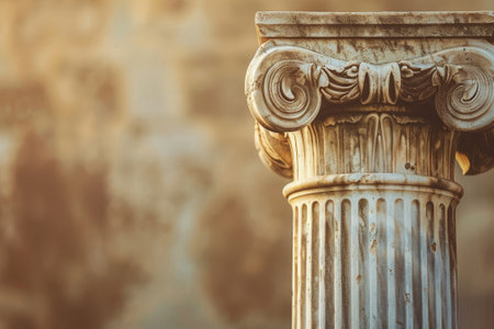 A beautifully crafted ancient column catches the warm sunlight, highlighting its detailed carvings and classical design at a historic location. The soft background enhances its elegance.