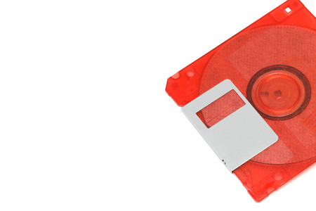 various old obsolete 5 inch and 3 inch floppy disk on white