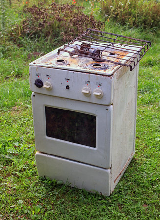 An old dirty gas stove in an abandoned state Unsanitary conditions