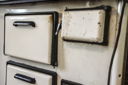 Old white metal oven in the kitchen