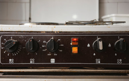 Dirty electric stove with fat on surface