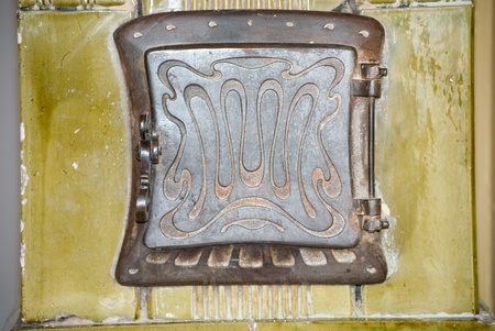 iron stove in the Russian bath lined with red brick