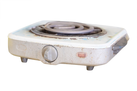 Old, rusty electric stove, cooking, isolated, white background