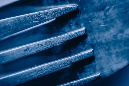 Lot of metal cutlery on a black background. Selective focus. Shallow depth of field.