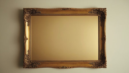 Ornate gold frame showcases elegant antique mirror with captivating reflections