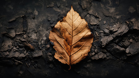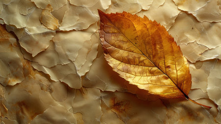 A single, beautifully textured autumn leaf rests on a simple gray background. Its golden and brown hues tell the story of a seasons end, symbolizing change, transition, and the quiet beauty found in natures cycles. A perfect minimalist representation of fall.