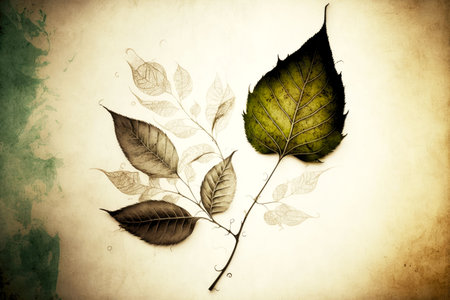 Detailed halftone texture of a dry leaf on a grunge background captures natures essence