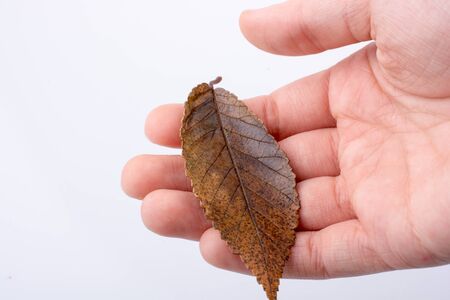 Close-up of a dried autumn leaf on a transparent background, nature and seasonal concept