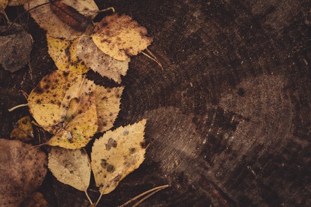 Word age stamped on to a fallen dead autumn leaf to represent the cycle of life