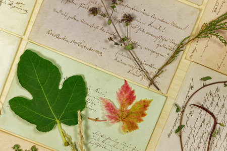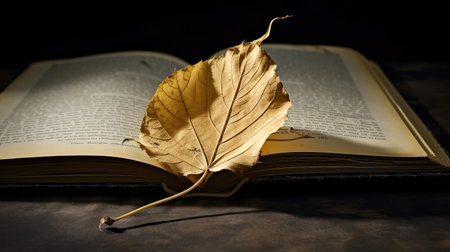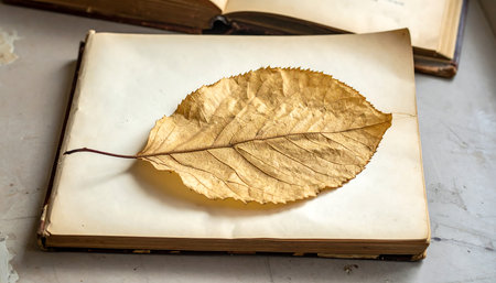 pressed dried leaf illustration book preservation, beauty delicate, crinkled flattened pressed dried leaf