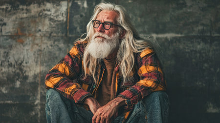 Sad senior man with gray beard sitting alone generated by artificial intelligence